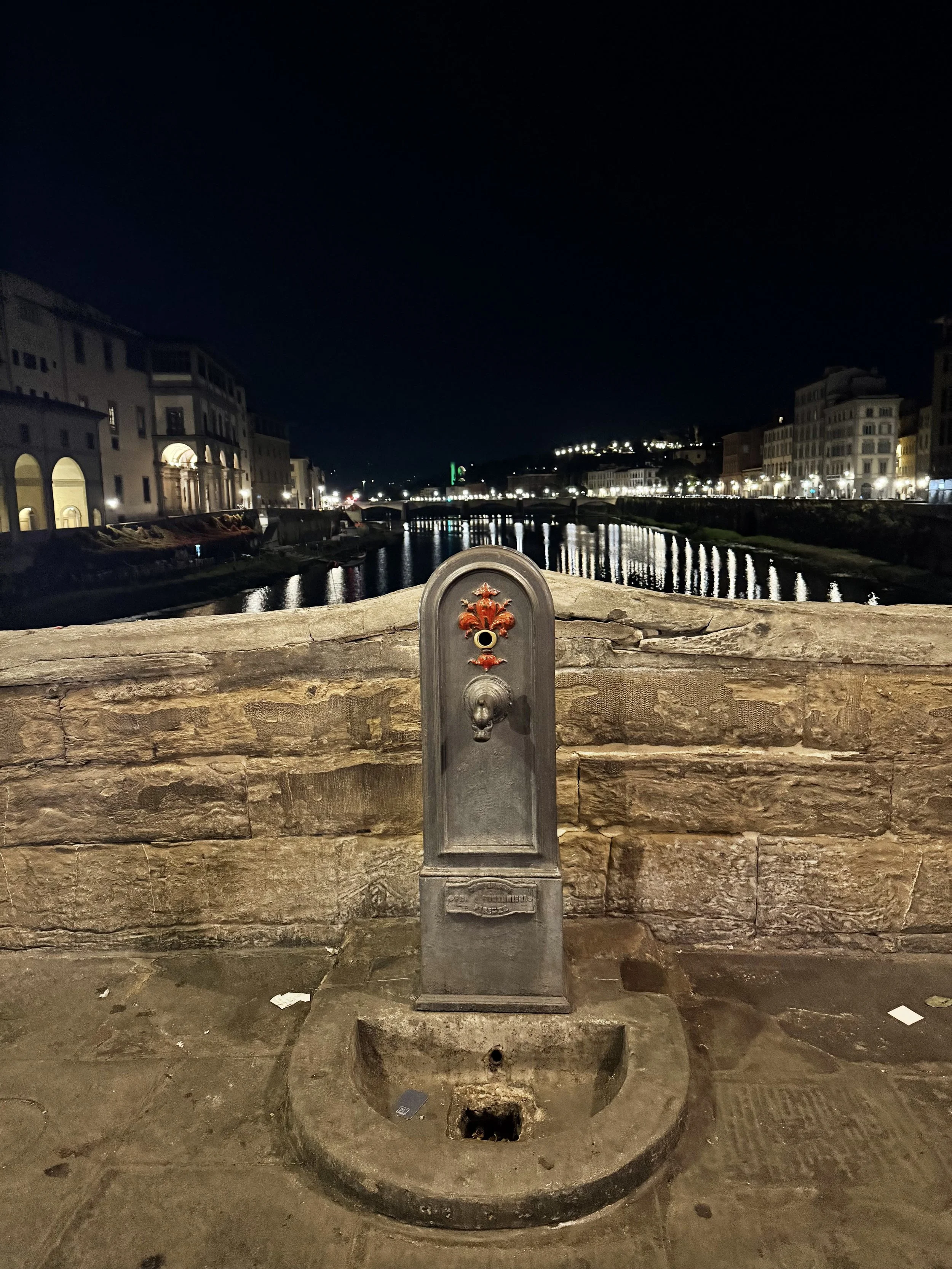Each fountain has its own charm: some are built into stone walls, and I find others stand proudly in piazzas with little metal spouts shaped like lion heads. And talking to other students about it, we all agree that in New York, we carry reusable bottles but rarely find free refill stations. But here in Florence, the city practically insists you stay hydrated and sustainable. I’m always seeing a crowd of tourists huddled around these fountains to cool off in the summery heat here and families teaching their kids to cup their hands under the stream.