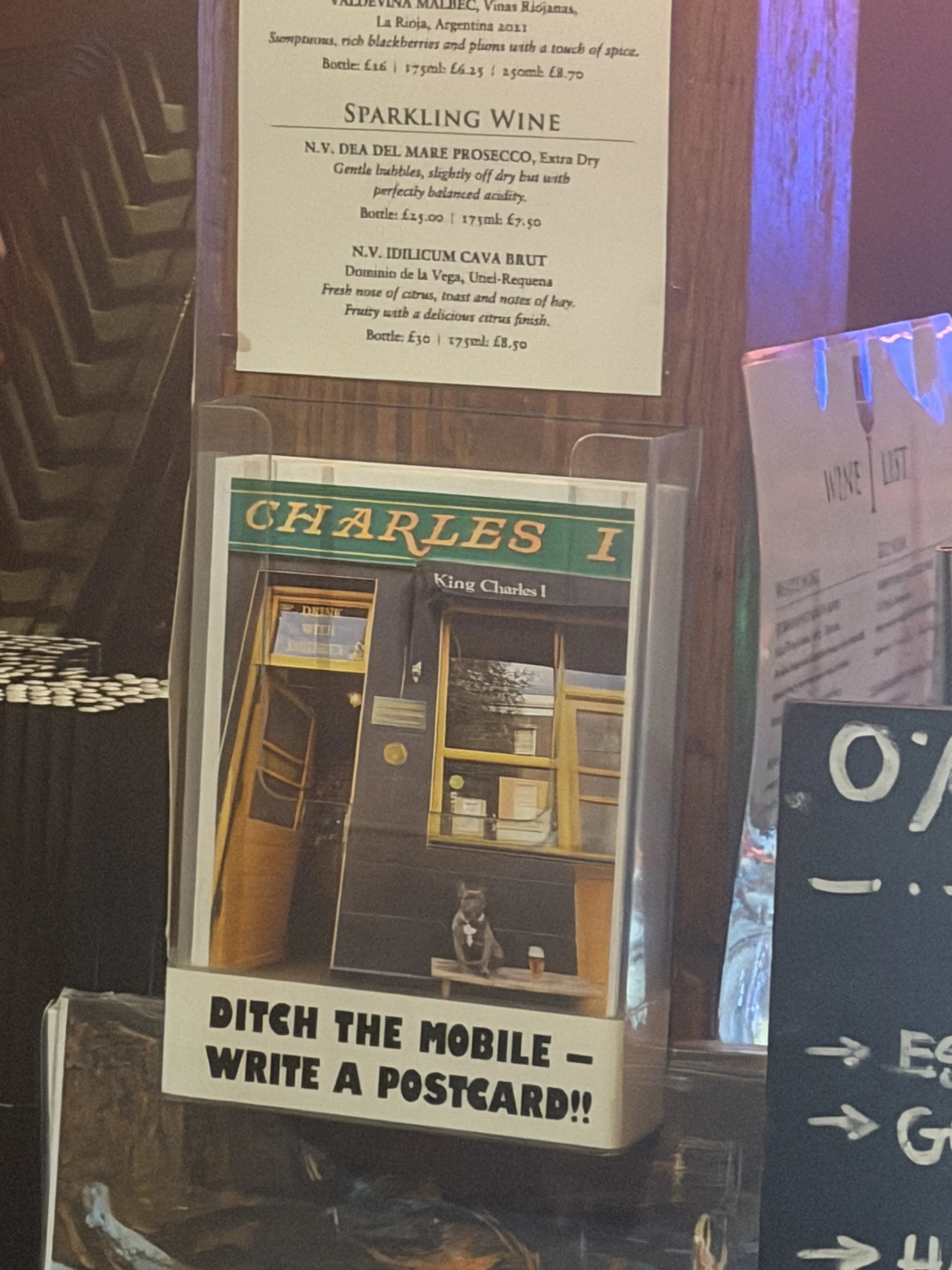 As I looked around, my eyes caught sight of a stack of postcards sitting by the bar, with a small sign that read, “ditch the mobile—write a postcard!!” In a place that was already so loud and crowded, it felt a little unexpected. But at the same time, it made sense. Instead of encouraging people to scroll or move quickly in and out, it felt like the pub was trying to get people to slow down, even just for a moment.